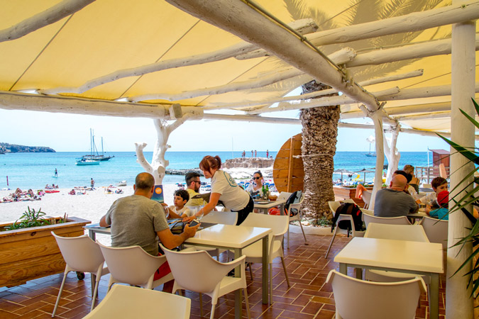 And since we are in this part of the island, we want to take the opportunity to show you a very special restaurant in Cala Tarida. This is El Chiringuito, a place where you can enjoy any of the dishes that any beach bar should have: varied baguettes, fresh salads, all kinds of tapas, and of course, chilled drinks to combat the heat. In this restaurant you’ll be able to enjoy a great serving of ‘Jamón Ibérico’ while the small ones can enjoy their own selection of specialties such as spaghetti bolognese and chicken nuggets. The Chiringuito Cala Tarida is that kind of restaurant that everyone loves and that will be the best choice when looking for shelter in the shade when the heat is at its peak..